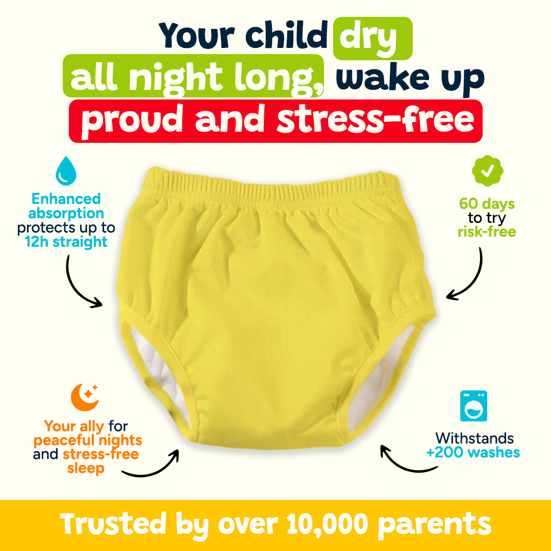 Tiny Tots Undies are designed with a natural, breathable, and ultra-soft bamboo lining. This hypoallergenic fabric respects your little one’s delicate skin while providing comfort and protection every night.